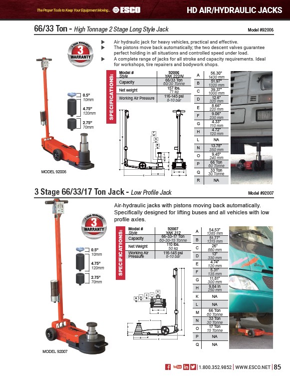 3 Stage 66/33/17 Ton Jack - Low Profile Jack Model #92007
