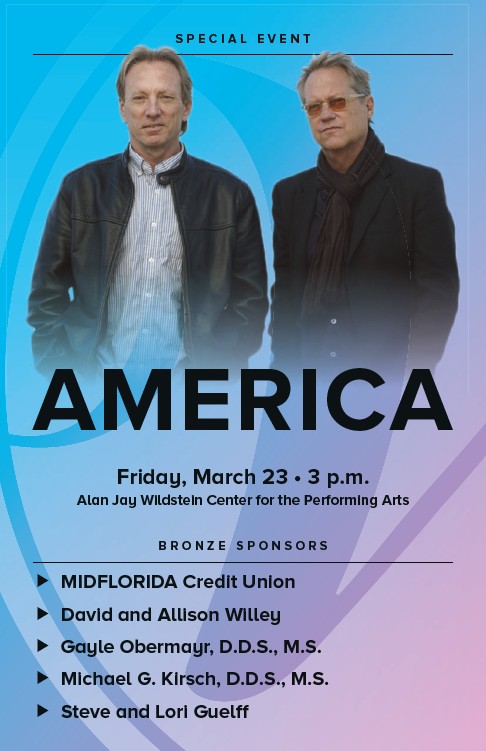 S P E C I A L E V E N T AMERICA Alan Jay Wildstein Center for the Performing Arts B R O N Z E S P O N S O R S MIDFLORIDA Credit Union David and Allison Willey Gayle Obermayr, D.D.S., M.S. Michael G. Kirsch, D.D.S., M.S. Steve and Lori Guelff