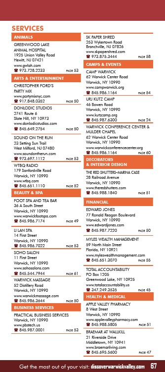 Get the most out of your visit: discoverwarwickvalley.com 67
