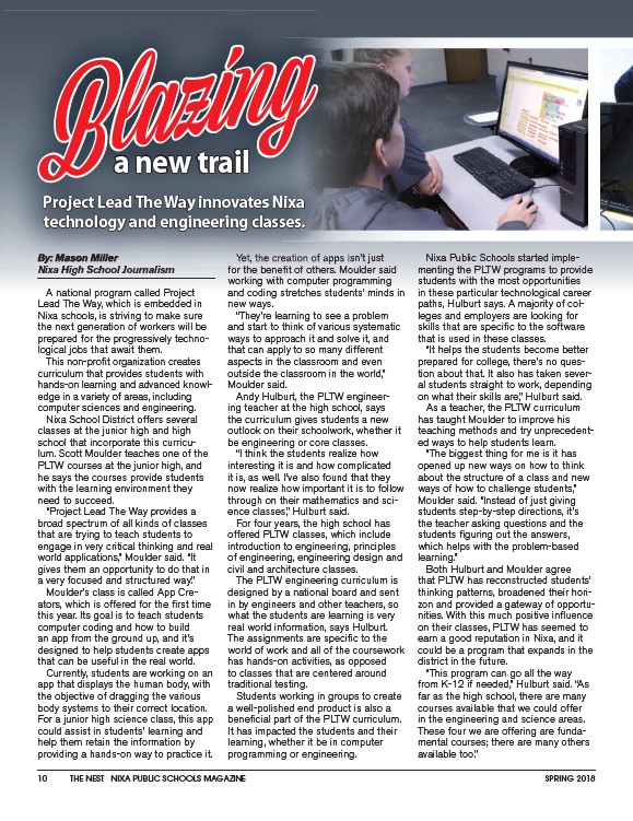 10 THE NEST NIXA PUBLIC SCHOOLS MAGAZINE SPRING 2018