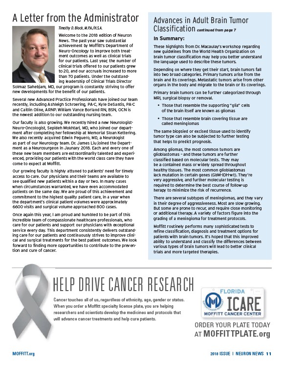 MOFFITT.org 2018 ISSUE | NEURON NEWS 11