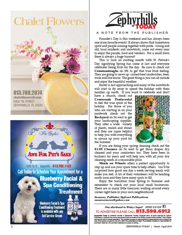 Zephyrhills Today is published monthly in Zephyrhills, Florida. Copyright 2018, all rights reserved by Upfront
