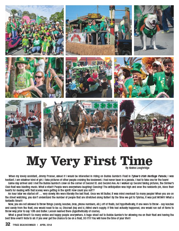 When my lovely assistant, Jimmy Prosser, asked if I would be interested in riding on Bubba Gumbo’s Float in Tybee’s Irish Heritage Parade, I was