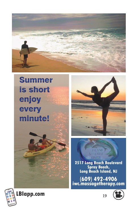 2517 Long Beach Boulevard Spray Beach, Long Beach Island, NJ (609) 492-4906 iwc.massagetherapy.com Summer is short enjoy every minute! LBIapp.com 19