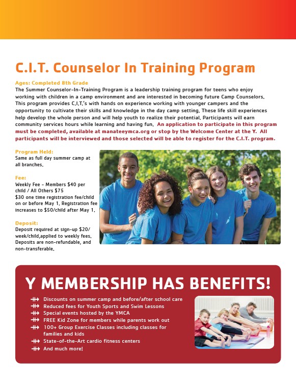 The Summer Counselor-In-Training Program is a leadership training program for teens who enjoy