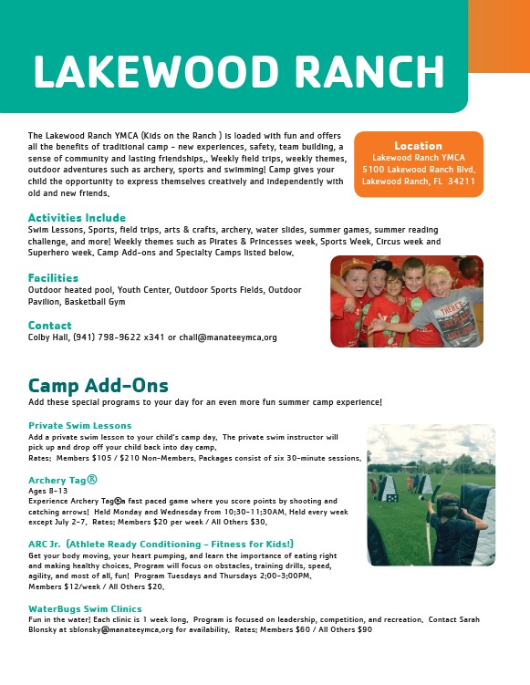 The Lakewood Ranch YMCA (Kids on the Ranch ) is loaded with fun and offers