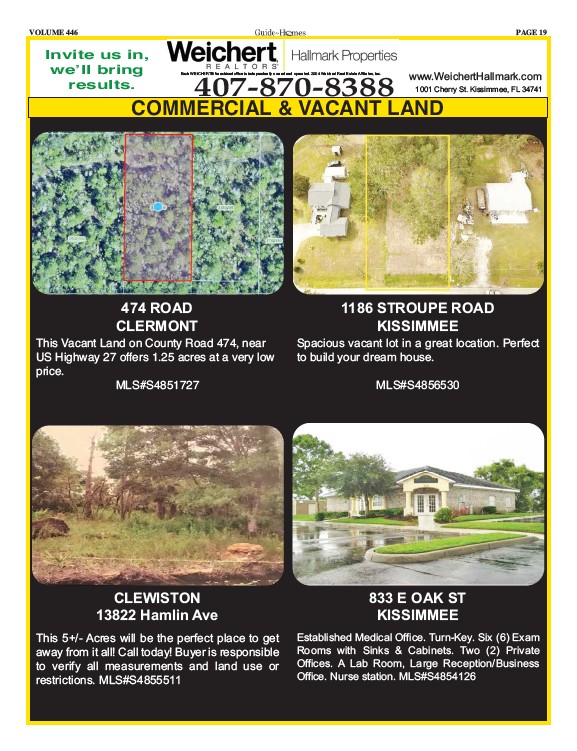 results. 1001 Cherry St. Kissimmee, FL 34741 Each WEICHERT® franchised office is independently owned and operated. 2004 Weichert Real Estate Affiliates, Inc.