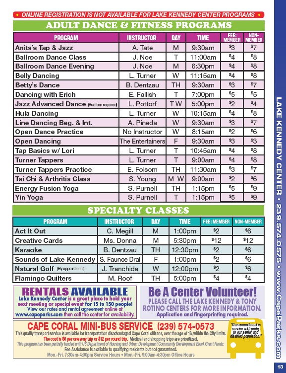 LAKE KENNEDY CENTER • 239.574.0575 • www.CapeParks.com