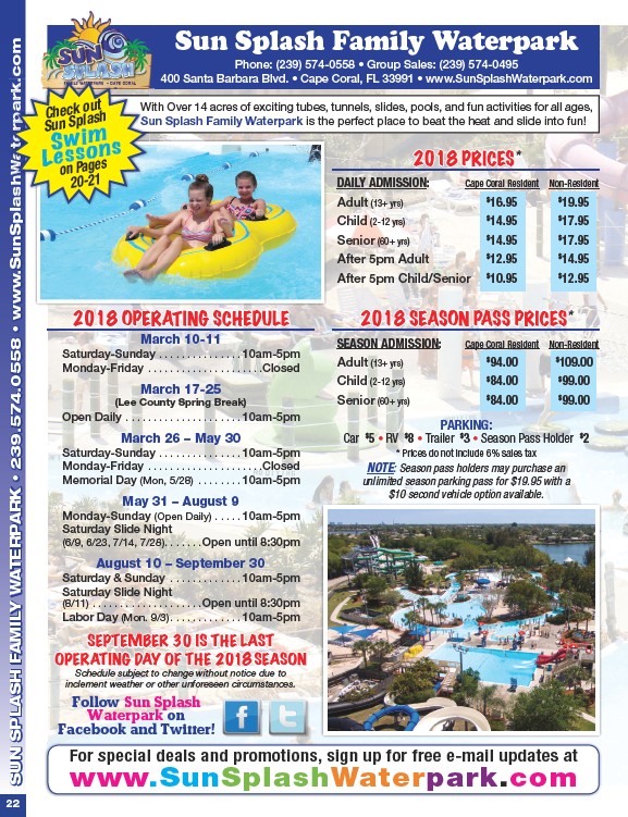 400 Santa Barbara Blvd. • Cape Coral, FL 33991 • www.SunSplashWaterpark.com