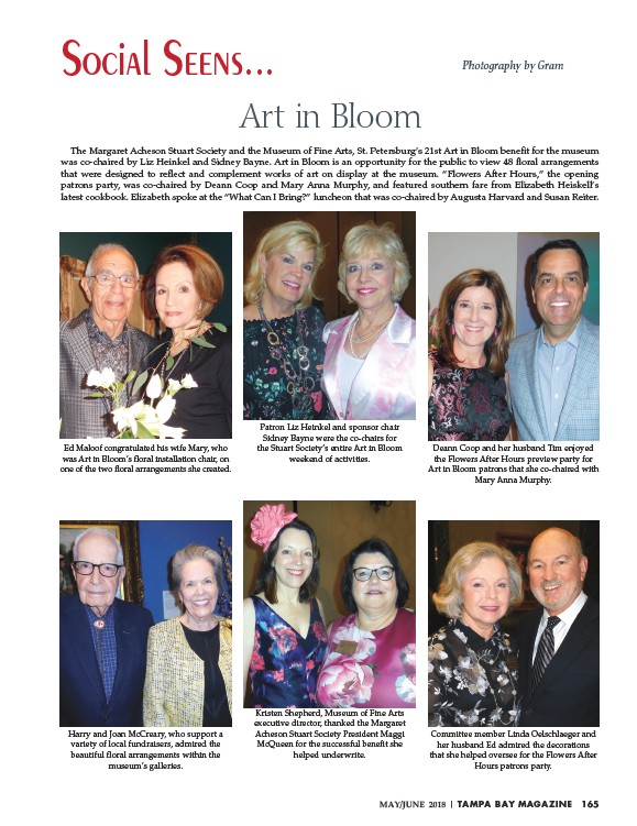 The Margaret Acheson Stuart Society and the Museum of Fine Arts, St. Petersburg’s 21st Art in Bloom benefit for the museum