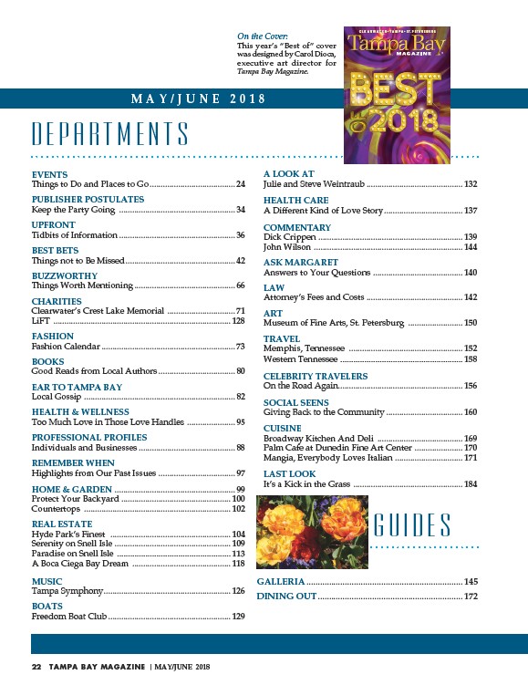 22 TAMPA BAY MAGAZINE | MAY/JUNE 2018