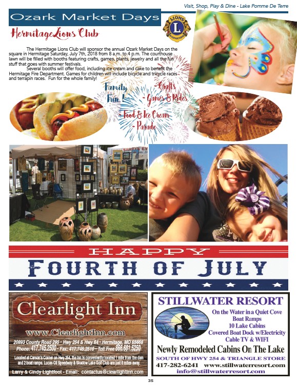 The Hermitage Lions Club will sponsor the annual Ozark Market Days on the