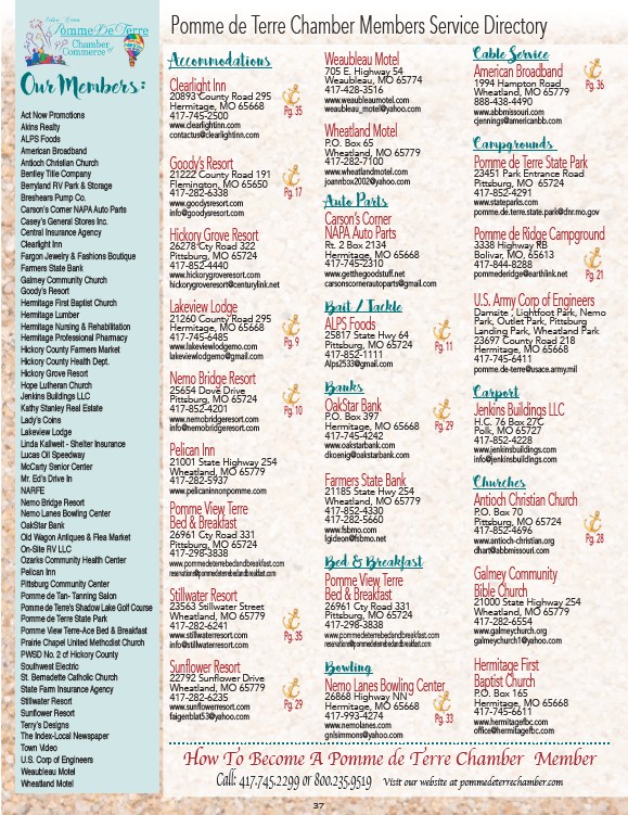Call: 417.745.2299 or 800.235.9519 Visit our website at pommedeterrechamber.com