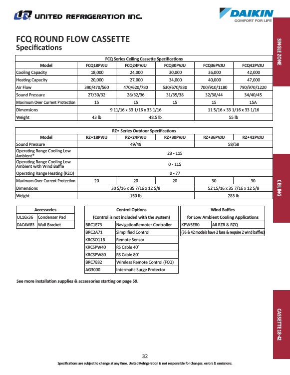 Model FCQ18PVU FCQ24PVU FCQ30PVU FCQ36PVU FCQ42PVU