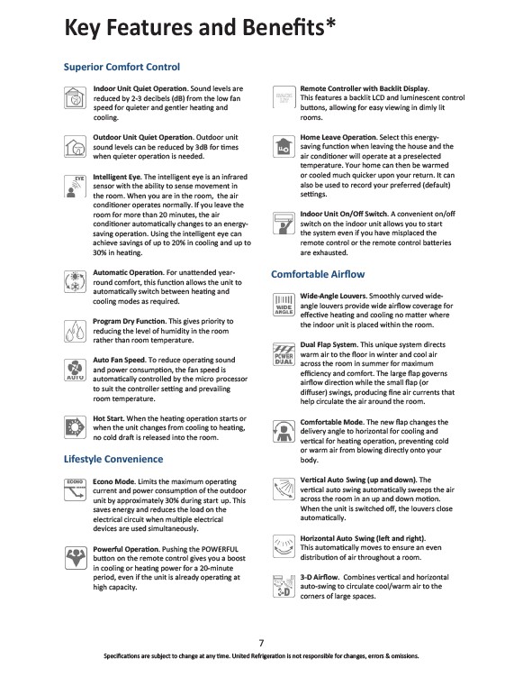 Specicaons are subect to change at any me. nited Refrigeraon is not responsible for changes, errors & omissions.