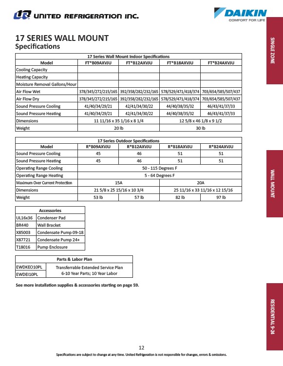 Model FTB09AVU FTB12AVU FTB18AVU FTB24AVU