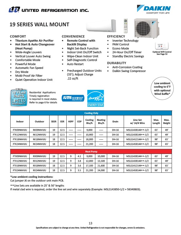 FTX24NMVJU RX24NMVJU 18 12.5 9 3.5 21,200 24,000 DH-16 MSLS1458144-1/2 98’ 65’