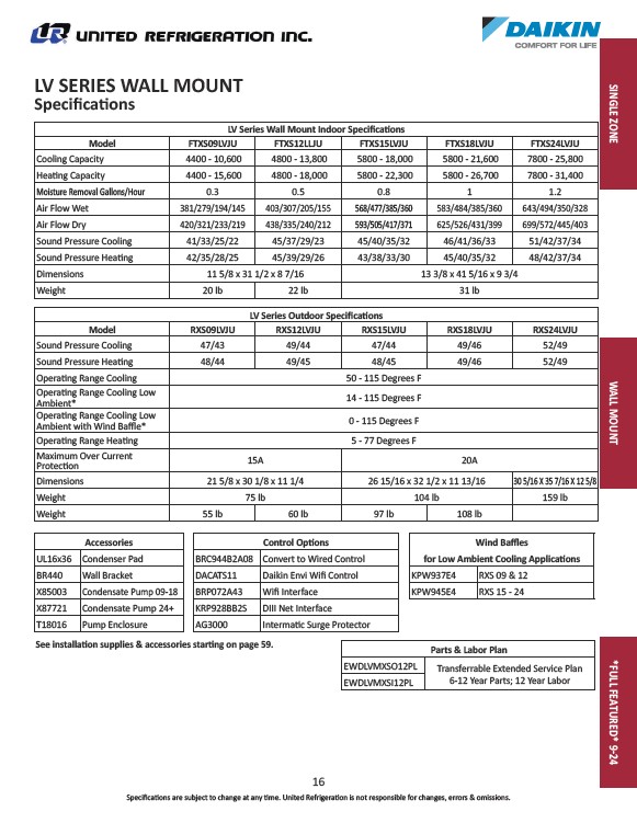 Model FTS09LVU FTS12LLU FTS1LVU FTS18LVU FTS24LVU