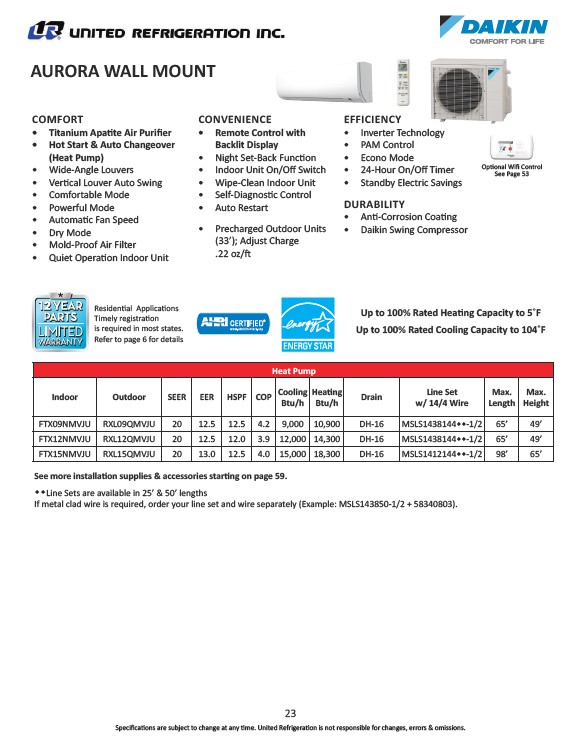 FTX09NMVJU RXL09QMVJU 20 12.5 12.5 4.2 9,000 10,900 DH-16 MSLS1438144-1/2 65’ 49’