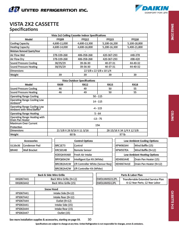Vista 2x2 Ceiling Cassee Indoor Specicaons