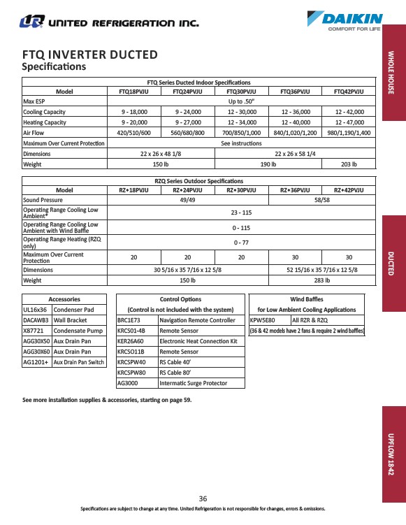 Model FTQ18PVU FTQ24PVU FTQ30PVU FTQ36PVU FTQ42PVU