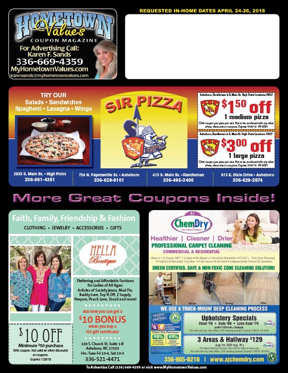 To Advertise Call (336) 669-4359 or visit www.MyHometownValues.com