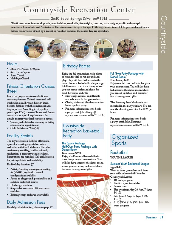 machines, fitness balls and Arc trainers. The fitness center is open for ages 14 through adult. Youth 14-17 years old must have a