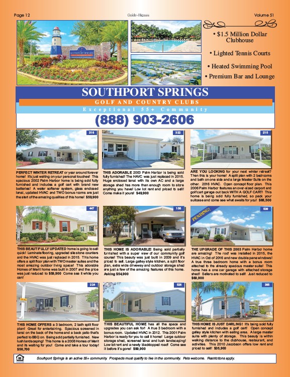 Southport Springs is an active 55+ community. Prospects must qualify to live in the community. Pets welcome. Restrictions apply.