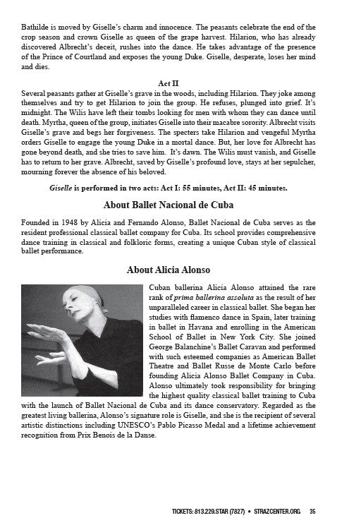 greatest living ballerina, Alonso’s signature role is Giselle, and she is the recipient of several