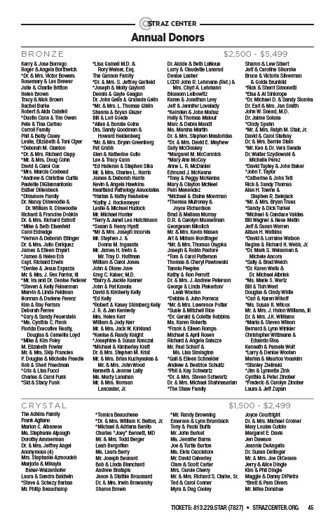 TICKETS: 813.229.STAR (7827) • STRAZCENTER.ORG 45