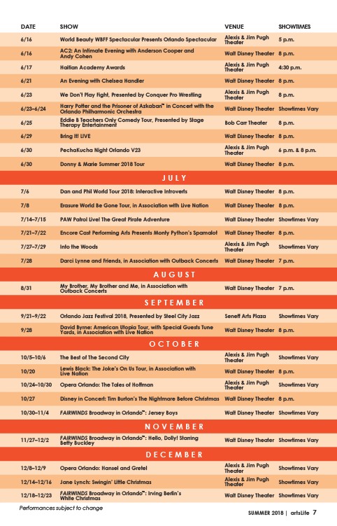 SUMMER 2018 | artsLife 7 Performances subject to change