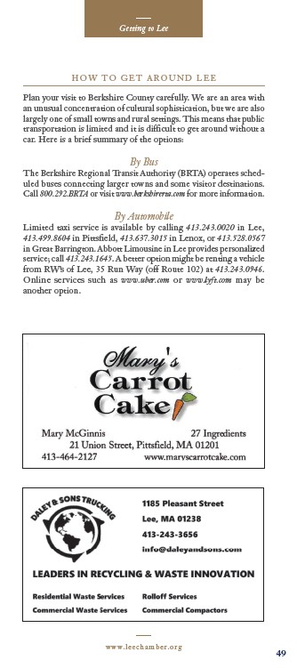 Limited taxi service is available by calling 413.243.0020 in Lee,