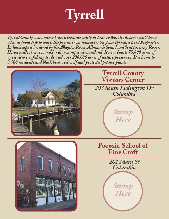 a less arduous trip to court. The precinct was named for Sir John Tyrrell, a Lord Proprietor.