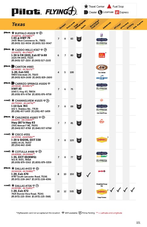 *MyRewards card not accepted at this location WiFi available Prime Parking ** = Latitude and Longitude