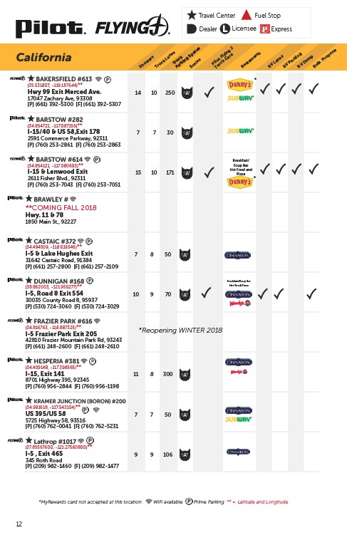 *MyRewards card not accepted at this location WiFi available Prime Parking ** = Latitude and Longitude