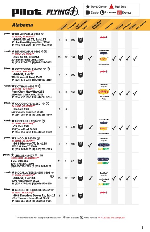*MyRewards card not accepted at this location WiFi available Prime Parking ** = Latitude and Longitude