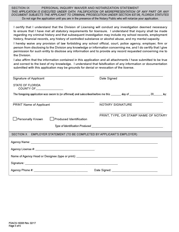 SECTION IX PERSONAL INQUIRY WAIVER AND NOTARIZATION STATEMENT