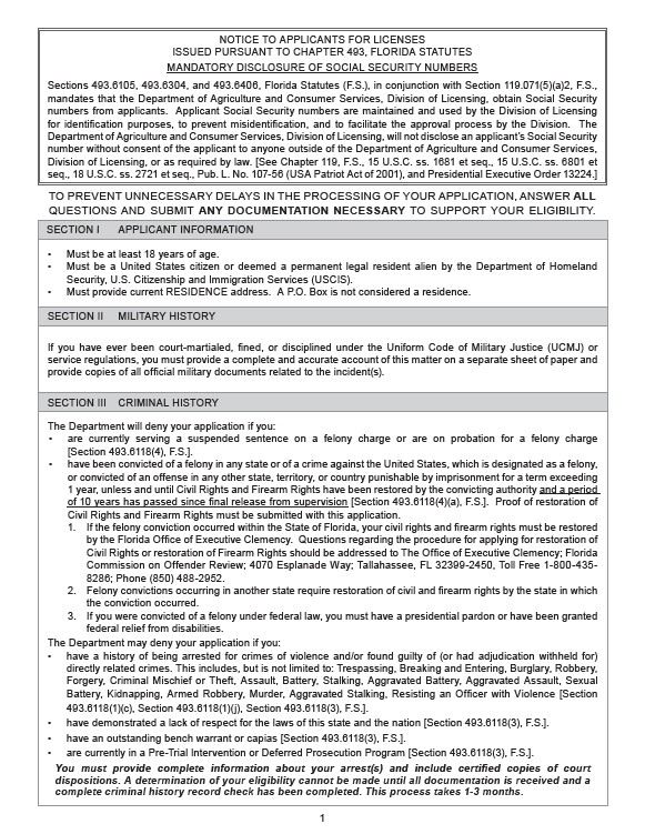 mandates that the Department of Agriculture and Consumer Services, Division of Licensing, obtain Social Security