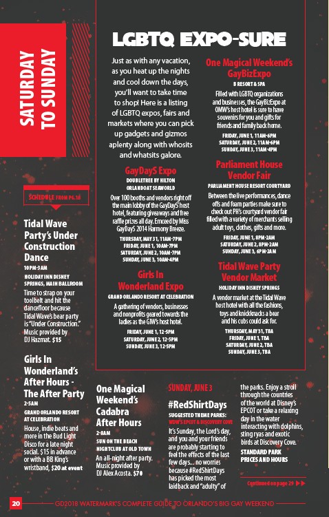 GD2018 WATERMARK’S COMPLETE GUIDE T 20 O ORLANDO’S BIG GAY WEEKEND