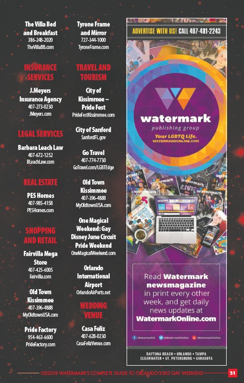 GD2018 WATERMARK’S COMPLETE GUIDE TO ORLANDO’S BIG GAY WEEKEND 31