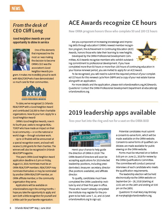 For more details and the application, please visit orlandorealtors.org/ACEAwards.
