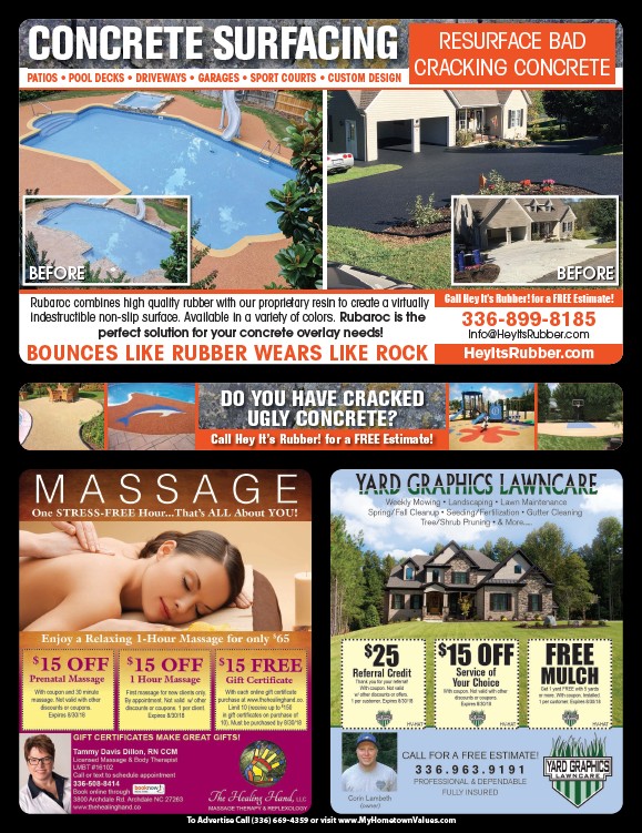 To Advertise Call (336) 669-4359 or visit www.MyHometownValues.com