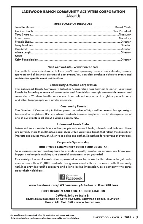 The Lakewood Ranch Community Activities Corporation was formed to enrich Lakewood