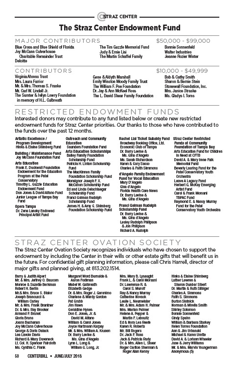 endowment funds for Straz Center priorities. Our thanks to those who have contributed to