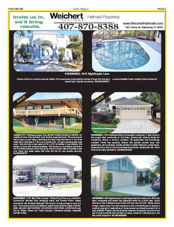 results. 1001 Cherry St. Kissimmee, FL 34741 Each WEICHERT® franchised office is independently owned and operated. 2004 Weichert Real Estate Affiliates, Inc.