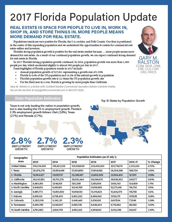 Populations trends are very positive for Florida, the I-4 corridor, and Polk County. Our firm is positioned