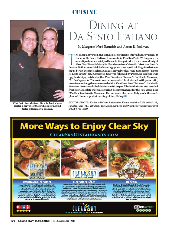 EDITOR’S NOTE: Da Sesto Italiano Ristorante e Vino is located at 7201 66th St. N.,