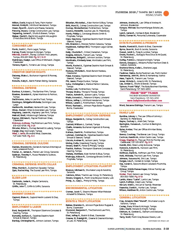 SUPER LAWYERS | FLORIDA 2018 – TAMPA BAY AREA S-19