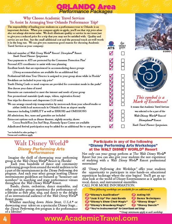 airfare (with local motorcoach in Orlando) from an airport nearby