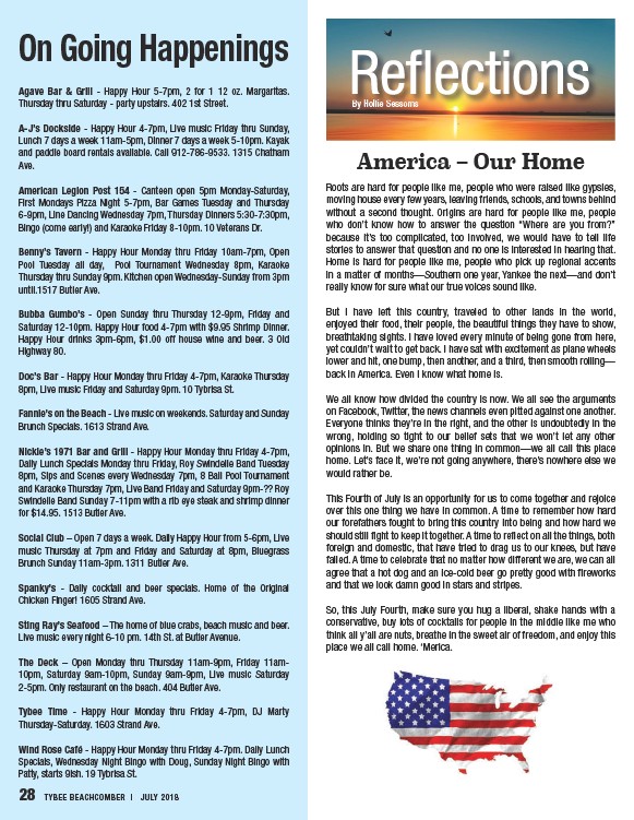 28 TYBEE BEACHCOMBER | JULY 2018